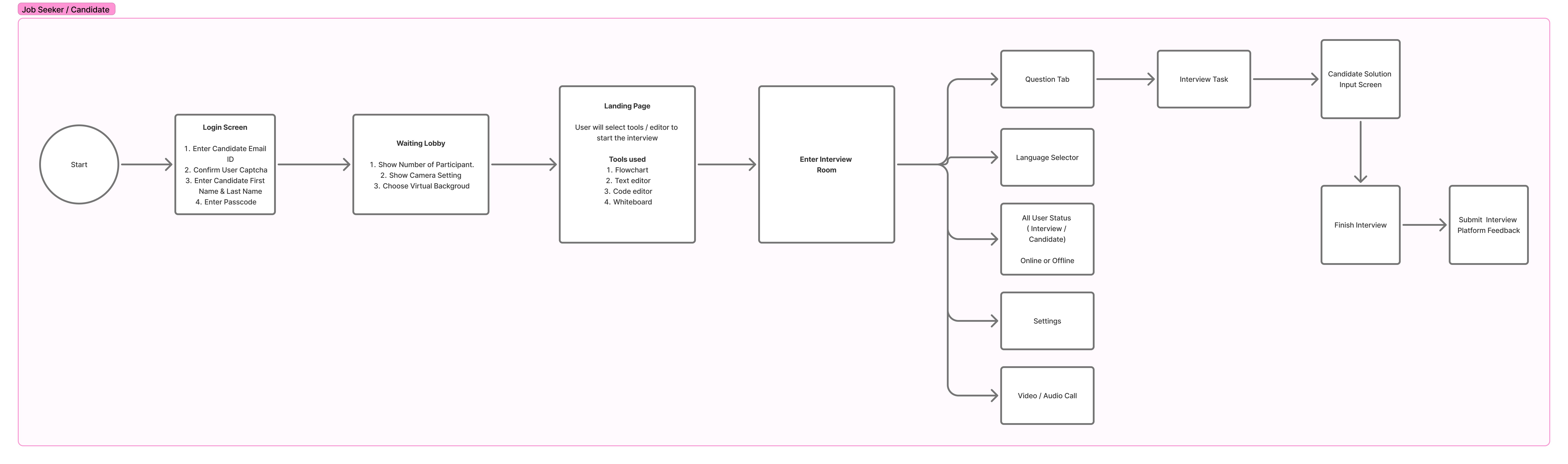 The core objective was to design a platform that could cater to multiple stakeholders—Admins (HR/Talent Acquisition), Interviewers (Hiring Managers), and Candidates (Job Seekers)—each having vastly different workflows, goals, and technical proficiencies. The goal was to build a unified, role-based platform that would minimize friction and enhance transparency and efficiency across all user journeys.